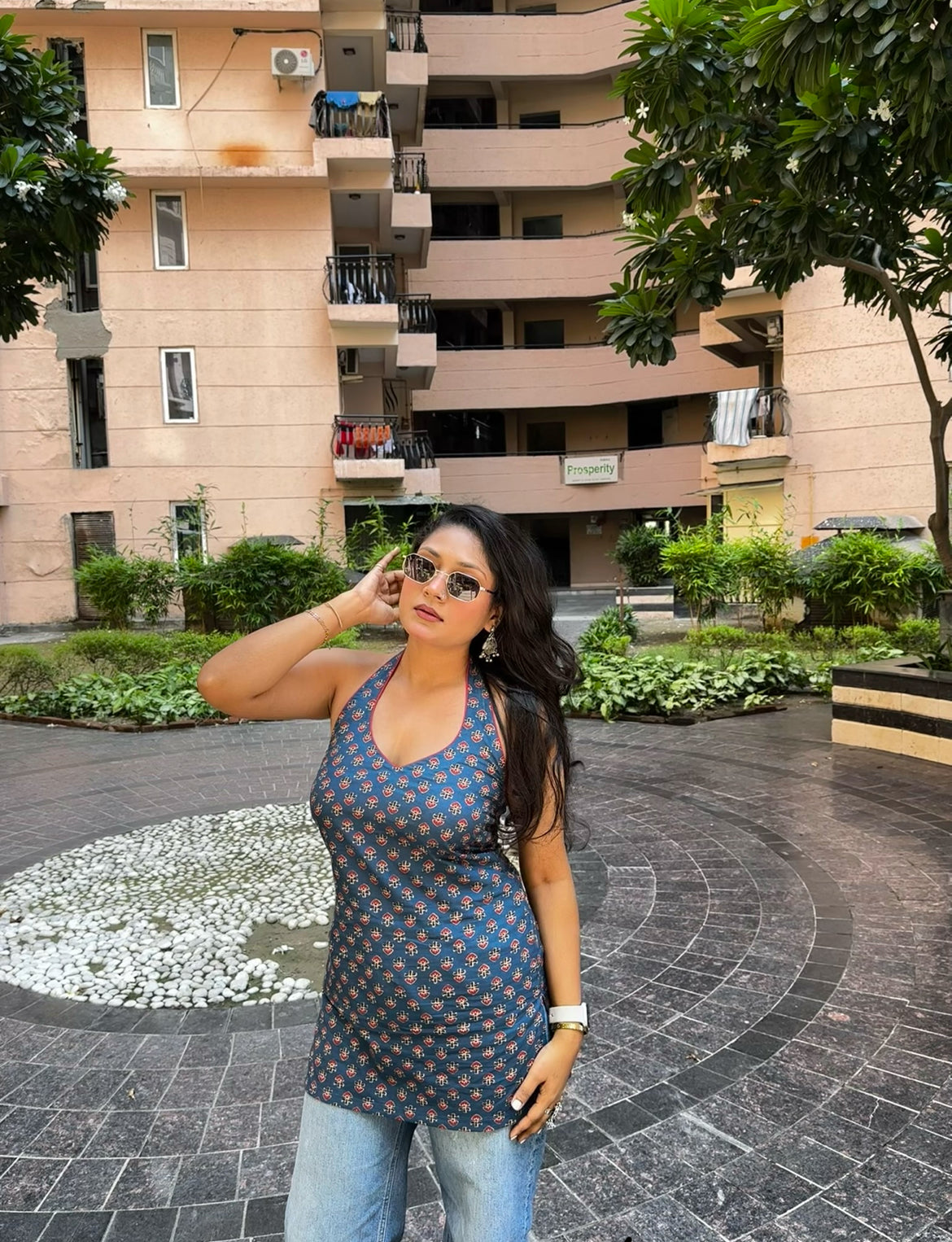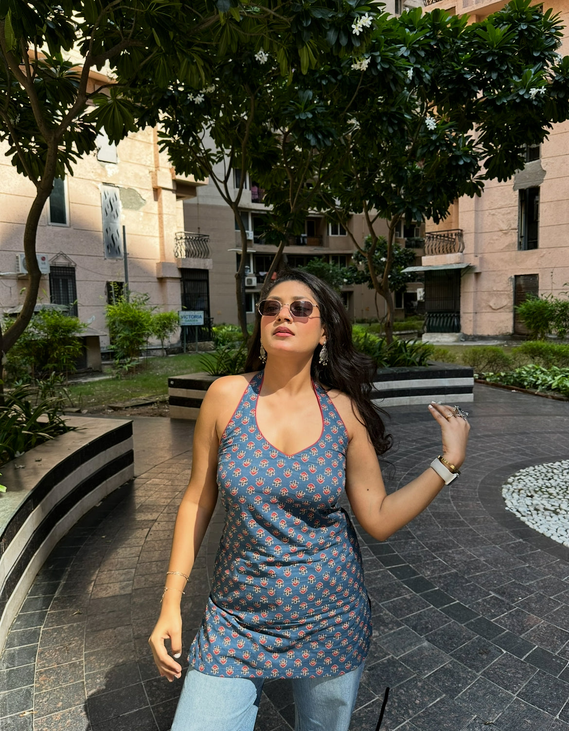 Phool kurti features a chic halter neck design for a stylish and effortless everyday look.